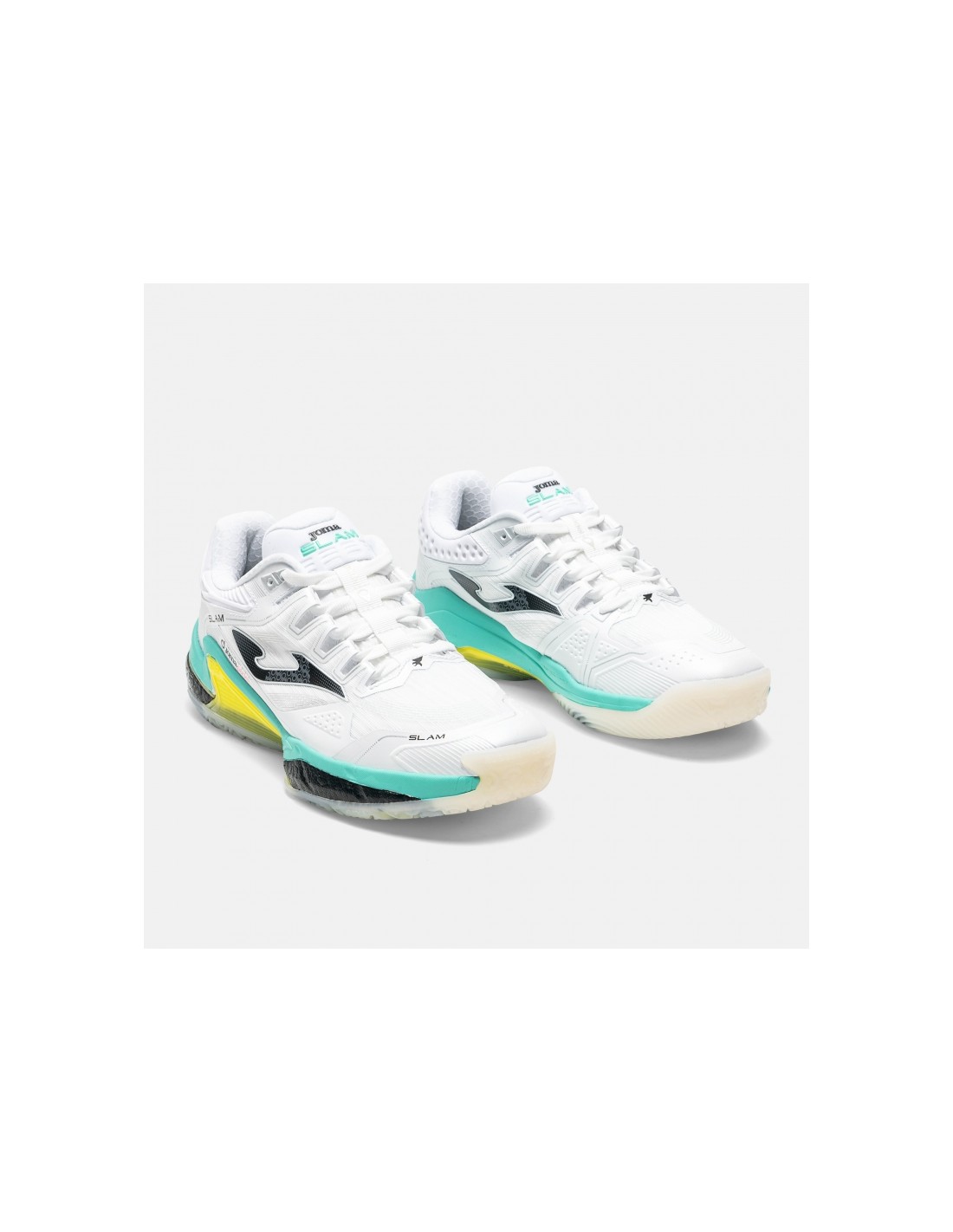 La Zapatilla Joma Slam Men 2632 en color BLANCO (referencia técnica TSLAMS2632OM) es el calzado oficial de los circuitos profesionales de pádel, diseñado para el jugador que busca estabilidad y explosividad en la pista. Su estética limpia en blanco con detalles técnicos refleja una filosofía de precisión y elegancia deportiva, siendo ideal para entrenamientos intensos y competición. Esta zapatilla ha sido concebida para soportar los movimientos laterales agresivos y los giros rápidos típicos del pádel, ofreciendo un equilibrio perfecto entre protección y agilidad, adaptándose también a superficies de entrenamiento indoor donde la tracción es crítica.