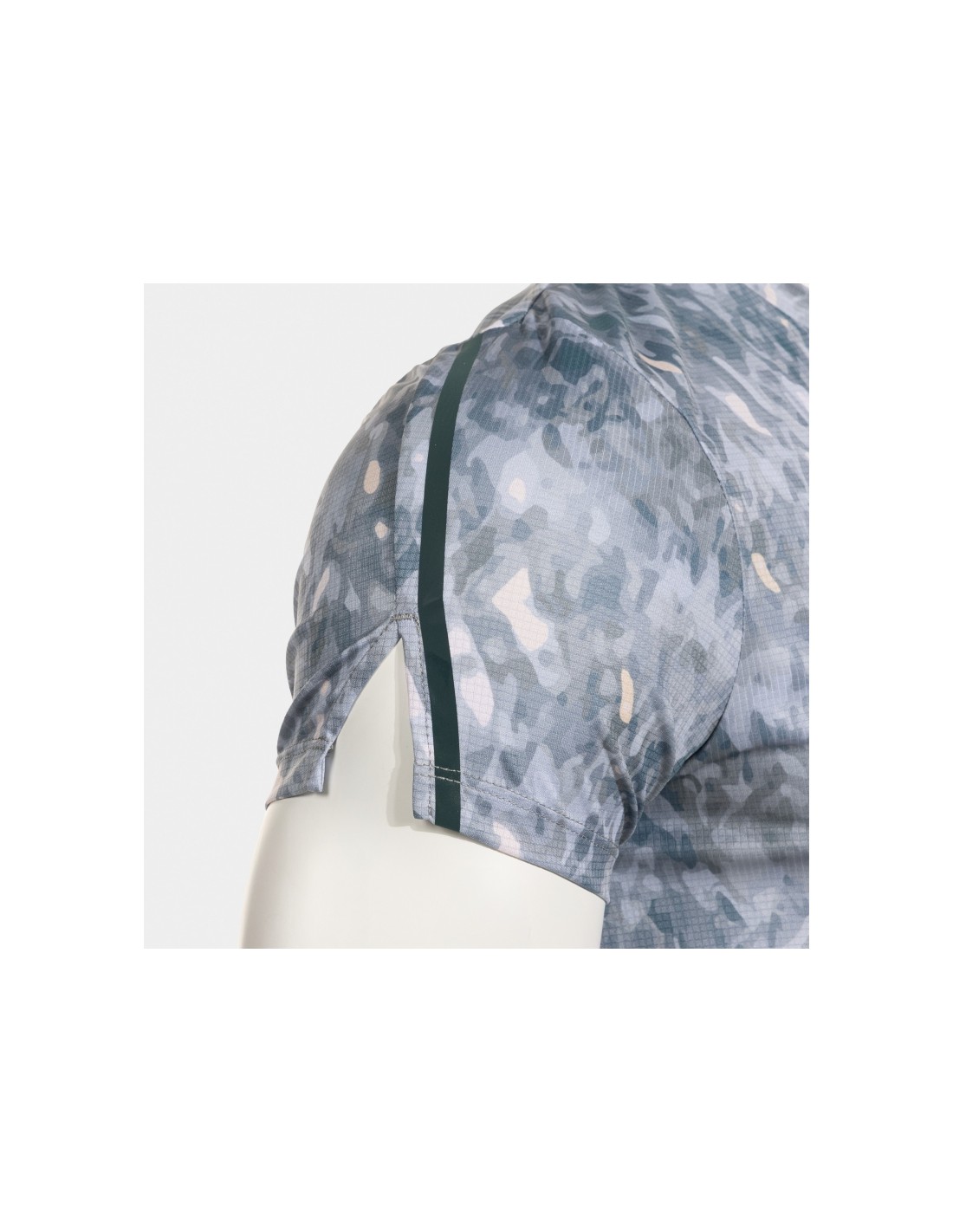 La confección técnica de este modelo destaca por el uso de un tejido de punto elástico de alta tecnología que favorece una transpirabilidad total. Integra paneles con tecnología Micro-Mesh System en las zonas de mayor sudoración (como las axilas y la espalda), lo que facilita la evaporación rápida de la humedad y mantiene el cuerpo seco durante los picos de esfuerzo máximo. El material es notablemente ligero y cuenta con costuras tipo Flatlock (planas), diseñadas específicamente para minimizar la fricción y prevenir irritaciones en la piel durante movimientos repetitivos de larga duración, asegurando una durabilidad técnica y confort prolongado.