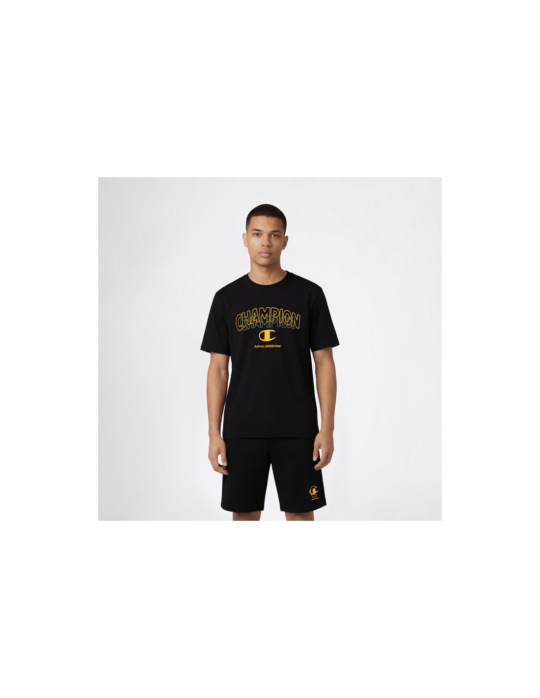 La camiseta Champion SS Tee en color negro es el pilar fundamental del estilo lifestyle y urban para el hombre contemporáneo. Diseñada bajo la filosofía de "Authentic Athletic Apparel", esta prenda de manga corta captura la esencia del legado deportivo americano, ofreciendo una estética minimalista que nunca pasa de moda. Su tono negro profundo (KK001) la convierte en la pieza más versátil de cualquier armario, ideal para combinar con looks de capas o como prenda principal en un outfit casual y decidido.