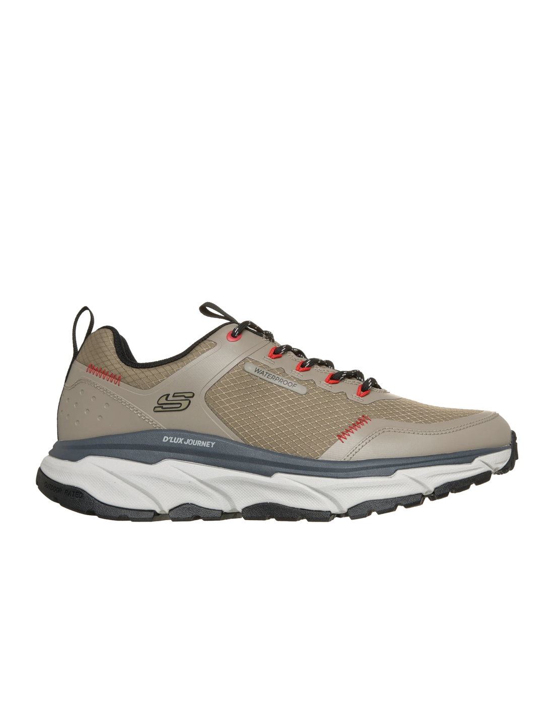 Zapatillas bajas con membrana impermeable, para la práctica de actividades al aire libre o en la naturaleza. Domina cualquier clima con las Skechers D'Lux Journey 237416. Estas zapatillas combinan el diseño Relaxed Fit™ para una mayor amplitud en la puntera con la innovadora tecnología Breathe Easy™: máxima transpirabilidad en un diseño 100% impermeable con costuras selladas. Comodidad superior y pies secos en cada paso.
