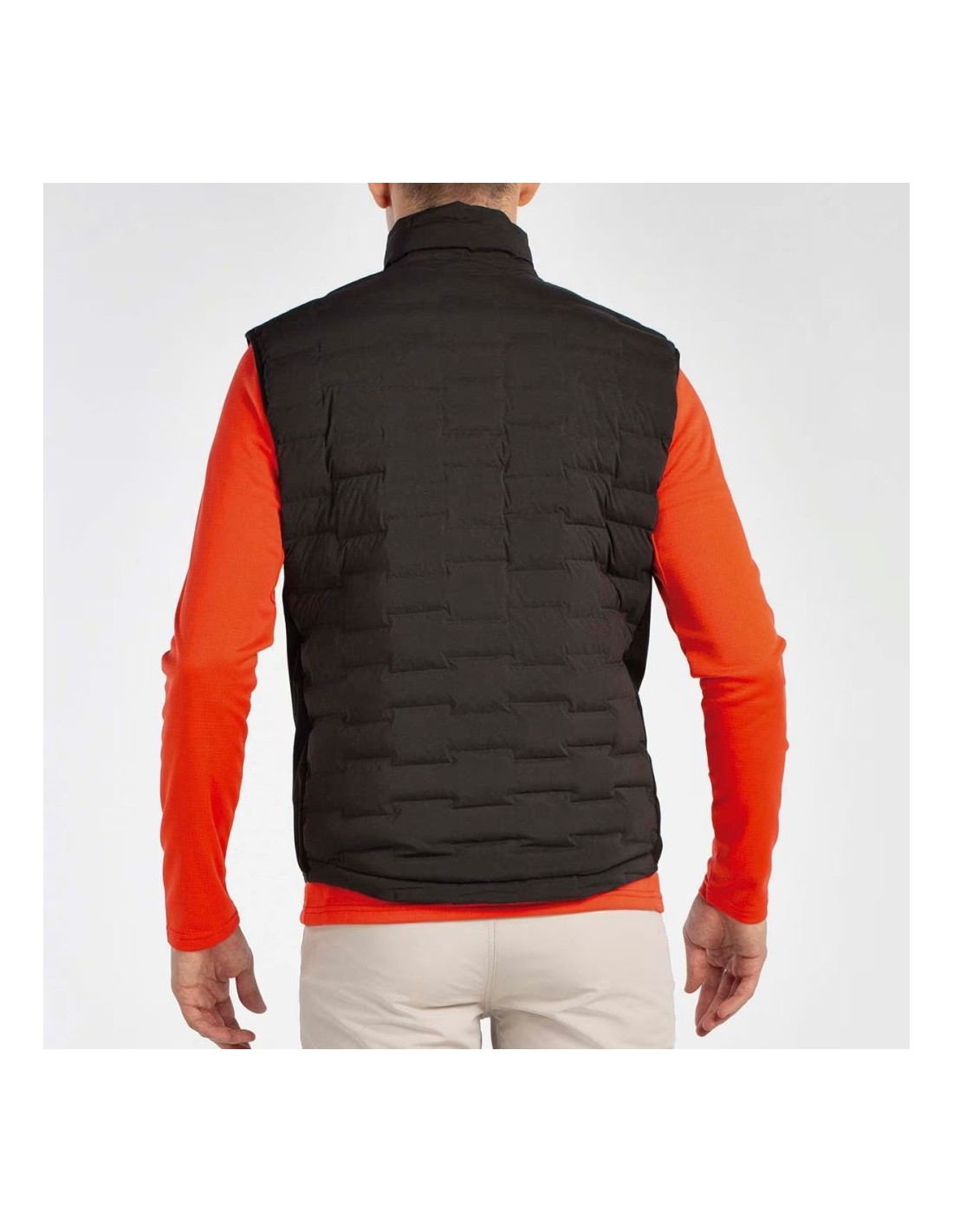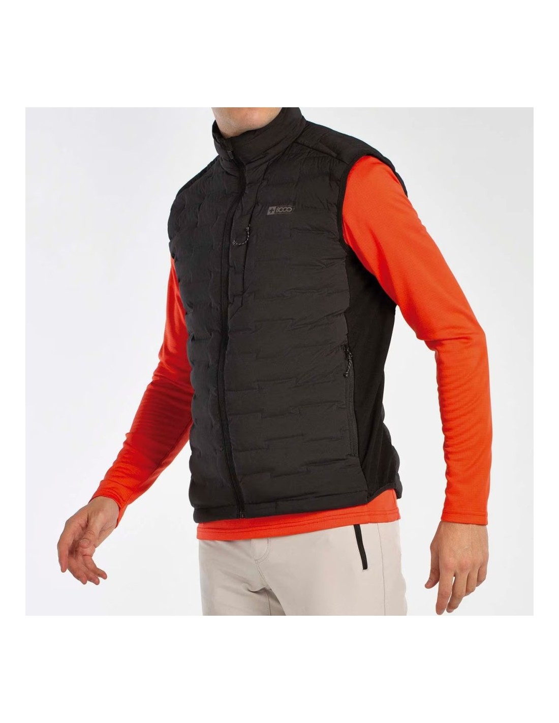 Chaleco realizado en material de altas prestaciones. Tejido 3D bi-elástico: este tejido de construcción doble, forma camaras sin costuras para albergar el material aislante. Esta calidad ofrece libertad de movimientos, refuerza la función de repelencia al agua que tiene el tejido gracias al acabado DWR (libre de PFC) además es muy ligero. La calidad del relleno es Sorona Aura de DUPONT que proporciona aislamiento térmico, ligereza y resistencia al agua. La prenda lleva cremalleras en los bolsillo laterales y 3º bolsillo en el pecho con cremallera invisible, bajo y sisas rematadas con vivos elásticos